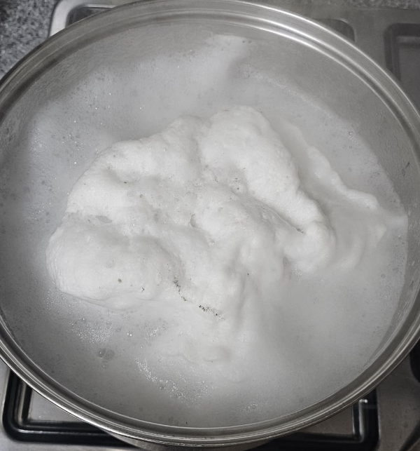 오래 끓이게 되면 재첩이 질겨지니 거품이 올라오면 바로 끄세요. 약 5~7분 정도면 됩니다.