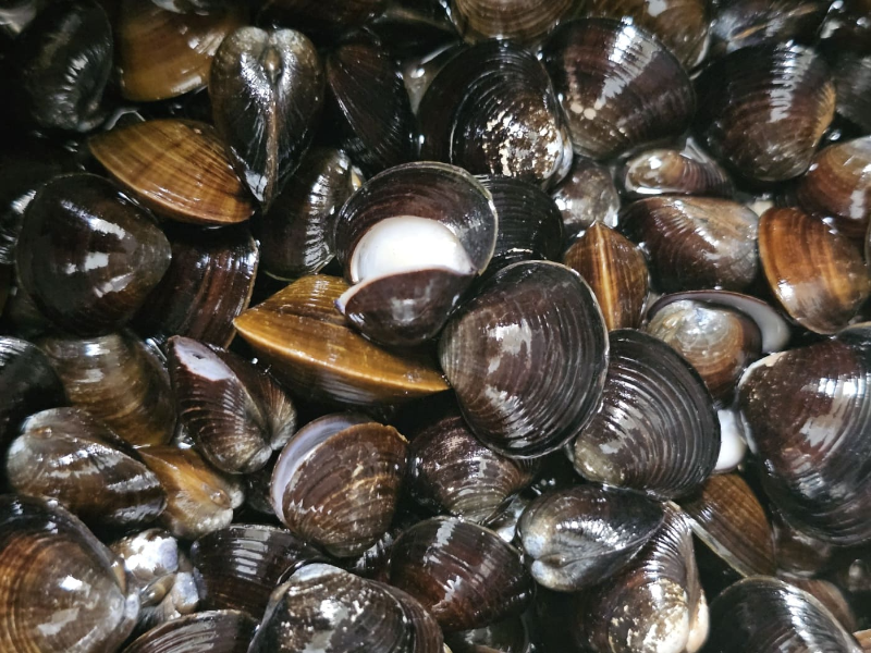 재첩은 작은 민물조개로, 우리나라 남해안과 섬진강 하류에서 많이 잡힙니다. 주요 채집 기간은 보통 3월부터 10월까지 이며 지금인 봄철(3~5월)이 가장 맛있는 시기로, 이때 채취한 재첩은 육질이 단단하고 감칠맛이 뛰어나요. 우리나라 재접은 1 급수에서 서식하며 환경오염으로 수가 점점 줄어드고 있는 안타까운 현실입니다. 아직까지 재첩은 양식기술이 발달하지 않아서 자연산뿐입니다.