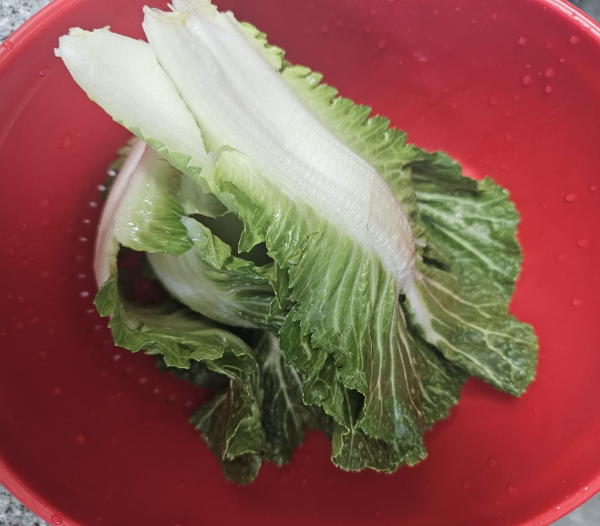 봄동은 흐르는 물에 깨끗이 씻어 물기를 제거해 주세요.