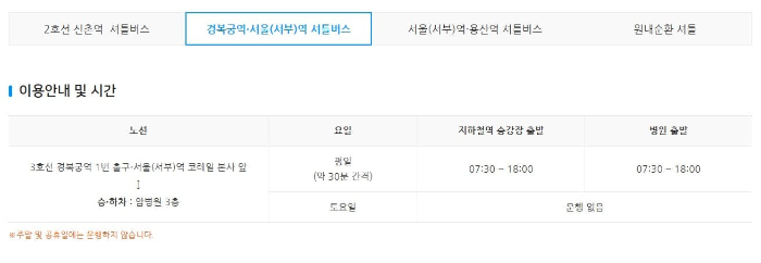 차에 좌석이 더이상 없으면 타고 싶어도 탈 수가 없어요. 그럼 15분 후에 오는 경복궁역 셔틀버스나 30분 후에 오는 다음 셔틀버스를 타셔야 합니다. 만약 진료시간이나 검사시간이 촉박하시다면 택시를 이용하셔야 합니다. 서울역 앞에는 항상 택시가 많이 있으니 따로 택시를 부르지는 않아도 됩니다.