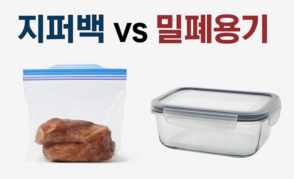 편리함과 공간 활용을 원한다면 지퍼백, 위생과 장기 보관을 원한다면 밀폐용기가 더 적합합니다.