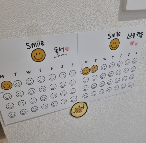 이렇게 규칙적인 습관을 몸에 익히며 당연하게 받아들이고 말하지 않아도 책상에 앉는 모습을 볼 수 있으실 거예요. 저학년이라면 조금 더 빠른 시간에 습관이 길러지겠죠.