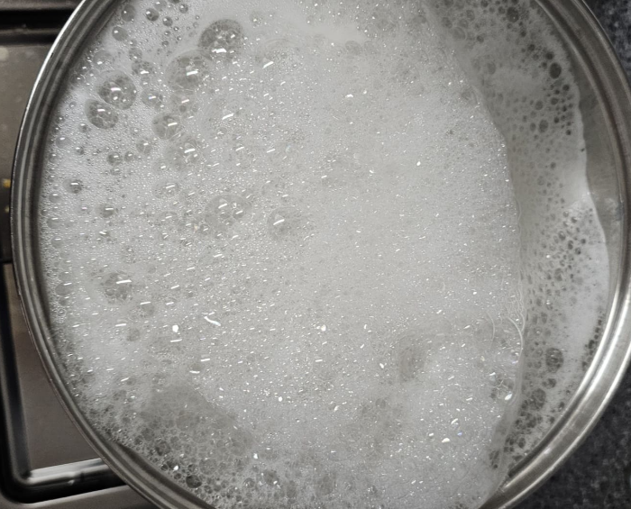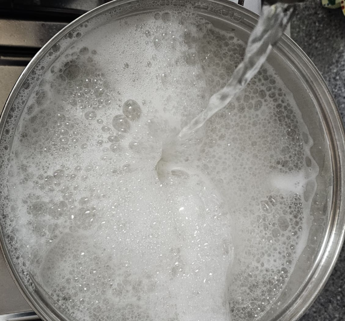 2. 끓기 시작하면 냉수 투입