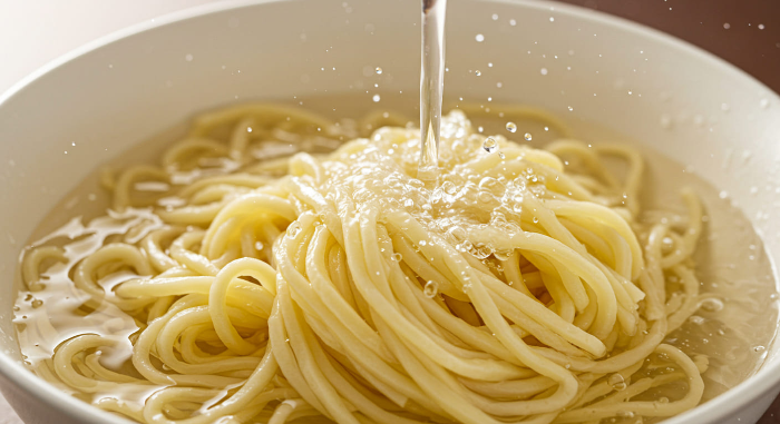 국수가 다 삶아지면 절대 뜨거운 상태로 오래 두시면 안돼요. 삶은 즉시 체에 밭쳐 찬물로 헹군 뒤, 얼음물로 한 번 더 헹구는 것이 포인트. 만약 얼음이 없다면 그냥 찬물로 헹궈도 괜찮아요. 이 과정을 통해 면발의 전분기를 제거하고, 쫄깃한 식감을 유지할 수 있어요.