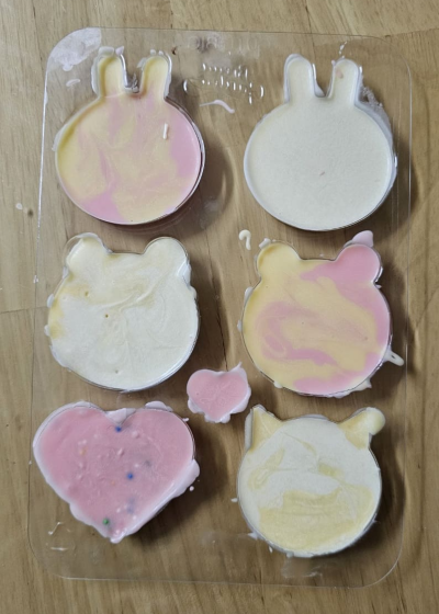 그리고는 몰드에서 빼내고 초콜릿펜을 중탕하여 녹인 다음에 이쁘게 꾸며주었어요. 다양한 동물모양에 다양한 표정을 그려 넣으며 너무 재밌어하는 모습을 보니 저도 웃음이 나네요.