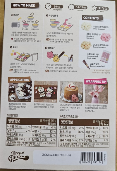 키트를 개봉하자 초콜릿 몰드 2개(틀), 초콜릿 재료(화이트초콜릿, 바나나초콜릿, 딸기초콜릿), 초콜릿펜, 설명서가 들어있었어요. 딸아이는 설레는 표정으로 하나하나 살펴보더니, "귀여워!" 라며 초콜릿을 만들기 전에 손부터 씻어야 한다며 손을 씻네요.