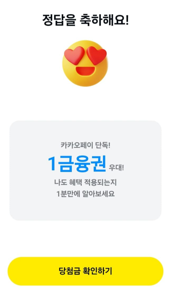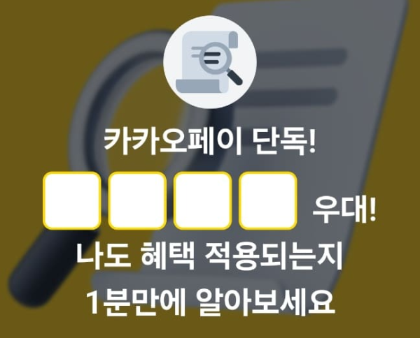 문제 : 카카오페이 단독! ㅁㅁㅁㅁ우대! 나도 혜택 적용되는지 1분만에 알아보세요.