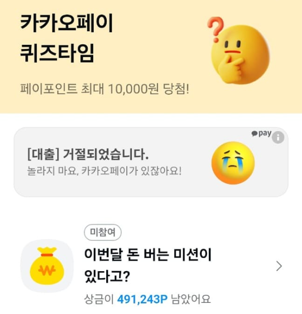 오늘도 카카오페이 퀴즈타임이 열렸습니다.