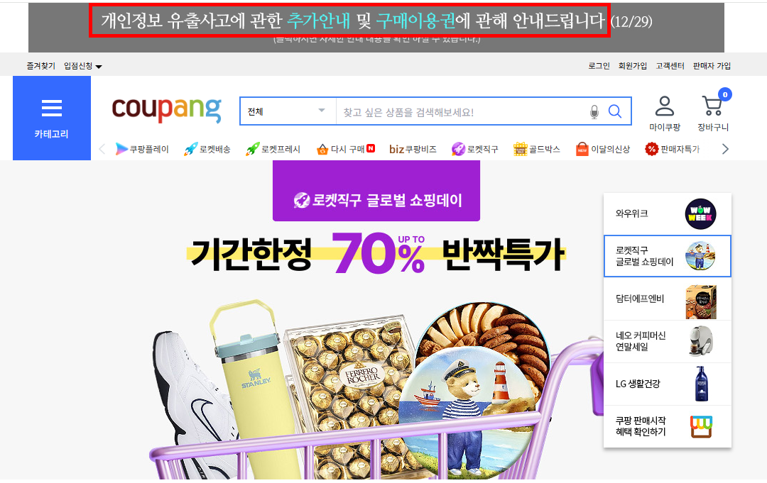 논란이 확산되자 쿠팡은 공식 보상책을 발표했습니다.