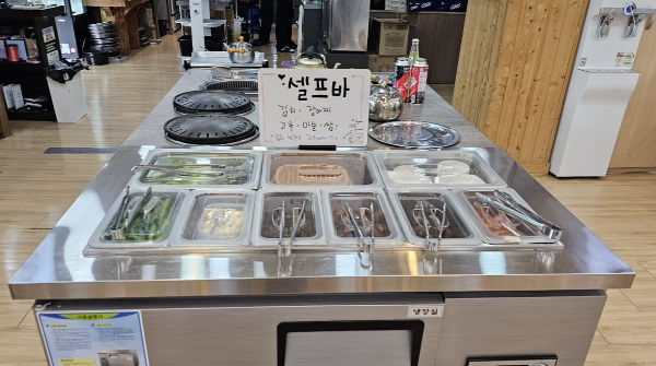 저흰 한방 능이백숙과 미나리+삼겹살 먹었습니다. 능이백숙은 불에 한 번 끓이기만 하면 바로 먹을 수 있고, 삼겹살은 초벌구이가 되어 나와서 살짝만 더 구워서 드시면 되더라고요.