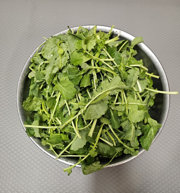 유채나물을 깨끗이 씻어 물기를 빼줍니다.