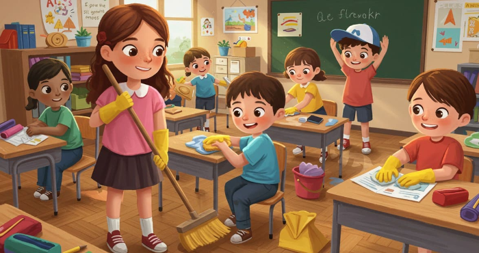 • 청소 시간에 함께 힘을 모으면 교실이 더 깨끗해져요.