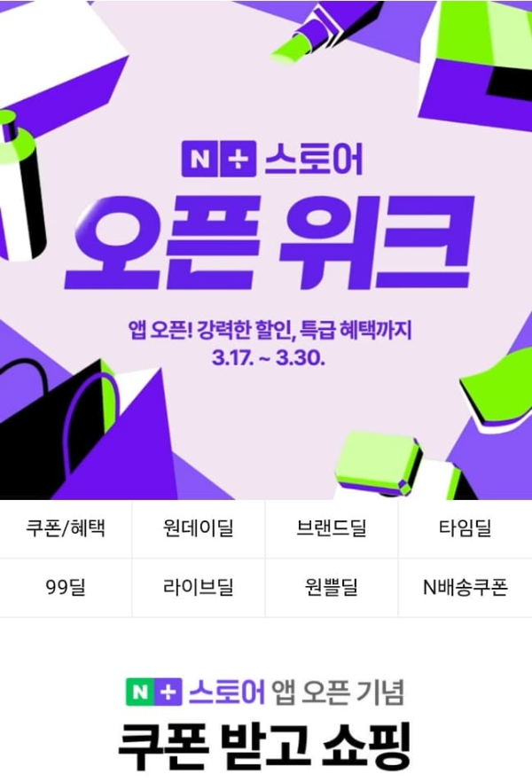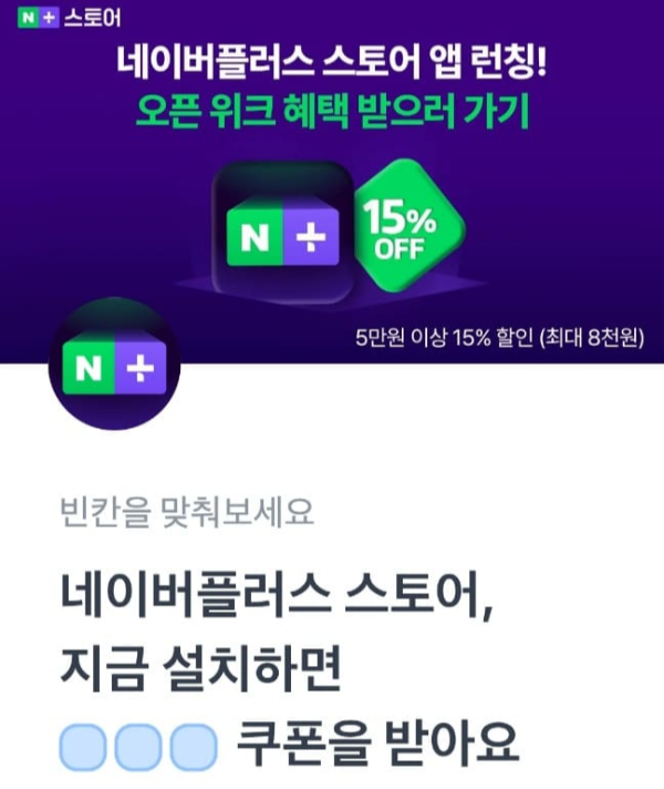 문제 : 네이버플러스 스토어, 지금 설치하면 ㅇㅇㅇ쿠폰을 받아요.