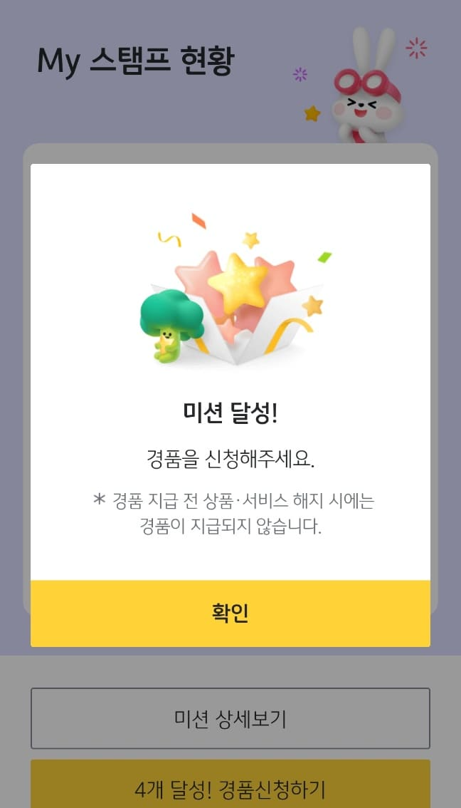 4가지 미션스탬프 중 3가지만 달성하면 응모기회가 주어집니다.