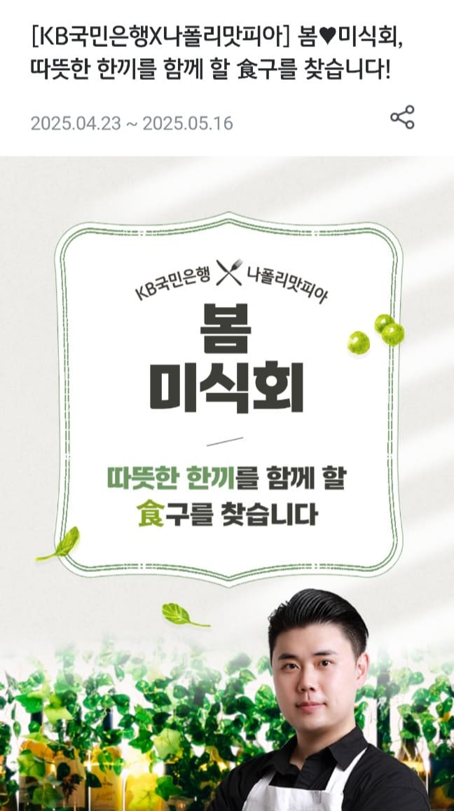 흑백요리사 권성준 쉐프와 함께하는 국민은행 봄♥미식회 이벤트! 따뜻한 한 끼를 경험하세요