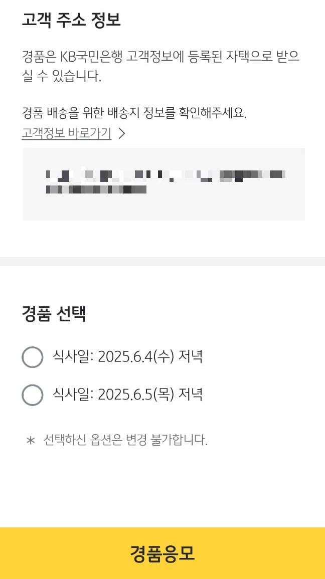 6월 4일과 6월 5일 저녁으로 응모가 되며 두 날짜 중 희망하는 날을 선택하고 경품 응모를 하면 자동으로 응모가 완료됩니다.
