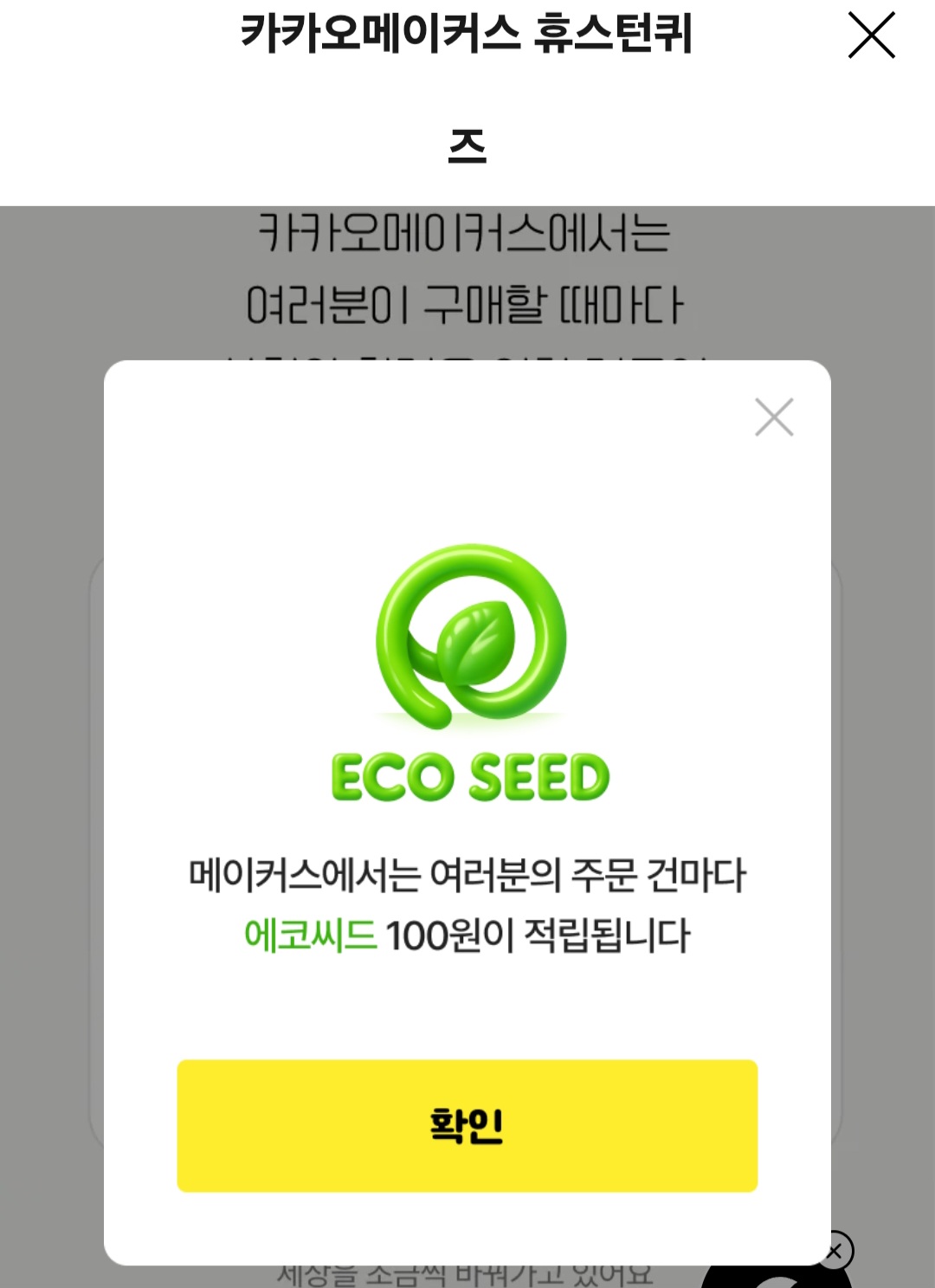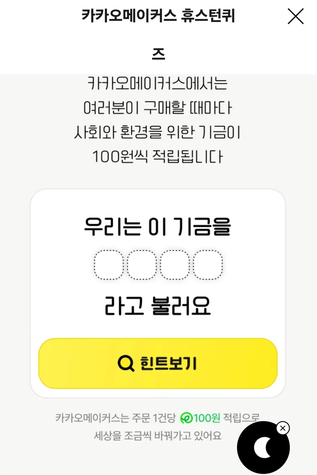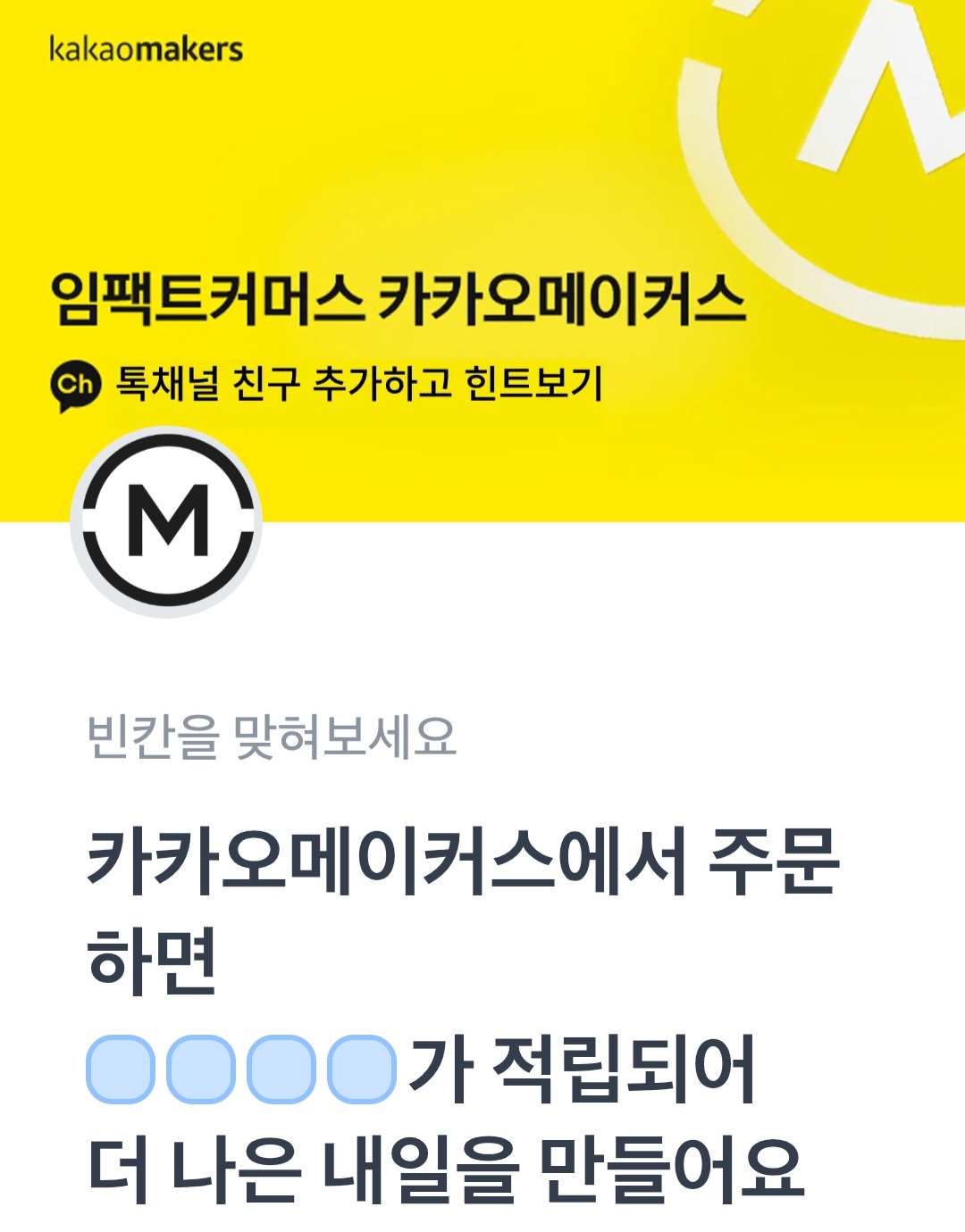 문제 : 카카오메이커스에서 주문하면 ㅇㅇㅇㅇ가 적립되어 더 나은 내일을 만들어요