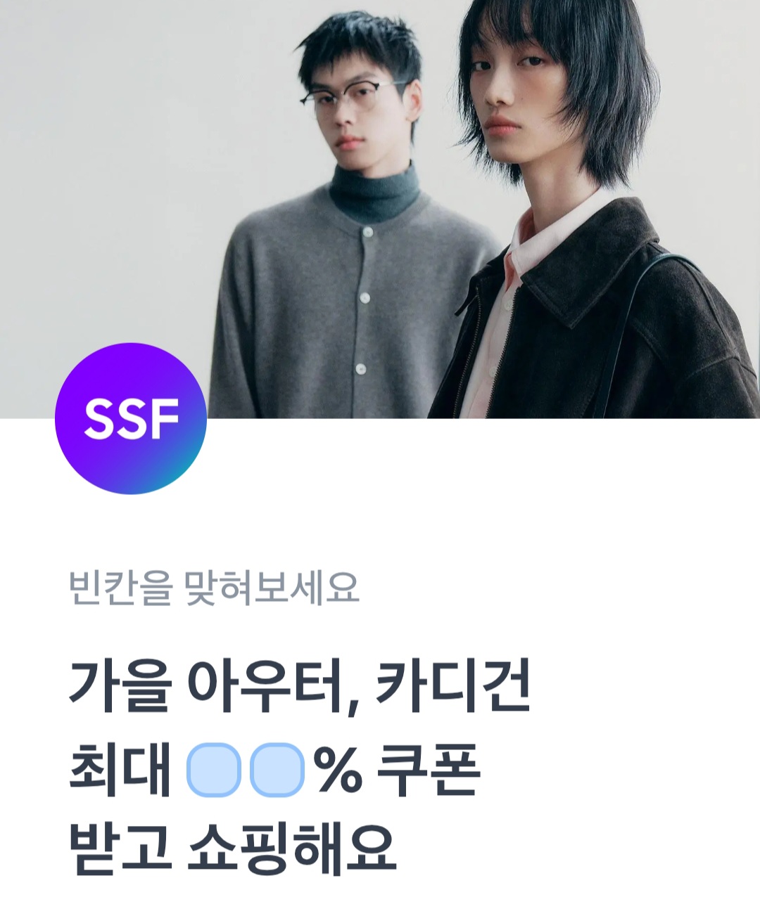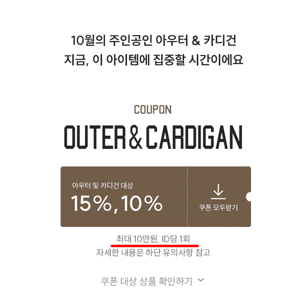문제 : 가을 아우터, 카디건 최대 ㅇㅇ%쿠폰 받고 쇼핑해요