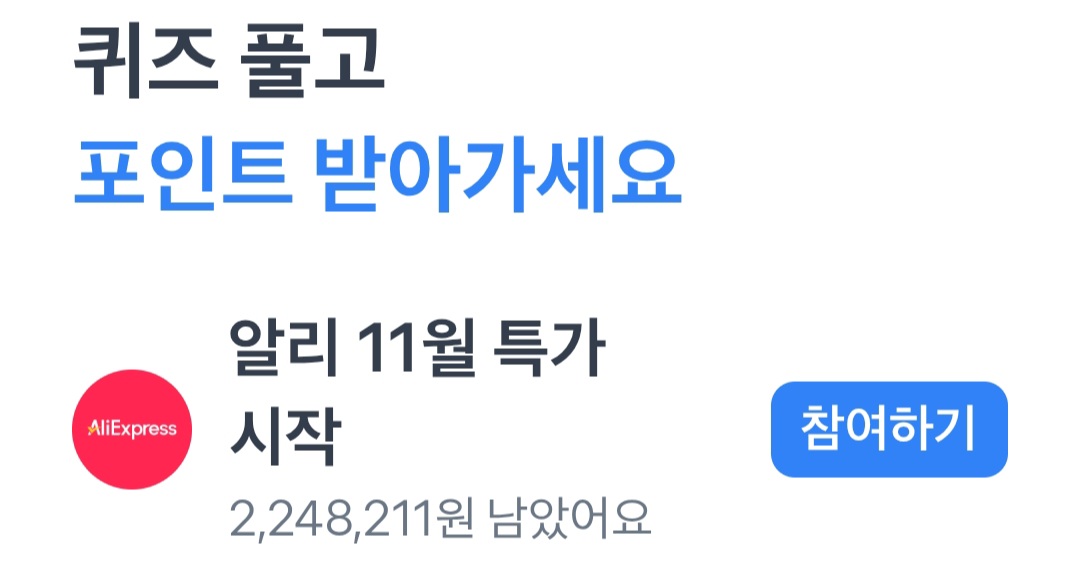 11월 10일 월요일 토스뱅크 행운퀴즈 정답 알리익스프레스 키움증권