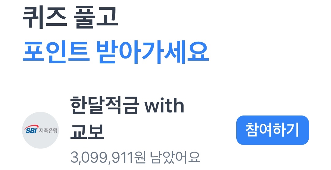 오늘 행운퀴즈인데요 한달적금이라니 솔깃합니다