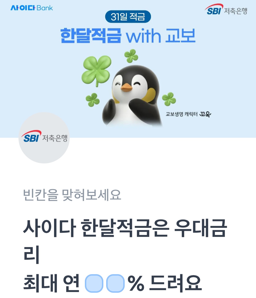 다들 어려운 경제상황에서 힘내서 금리높은 한달적금 신청해보세요