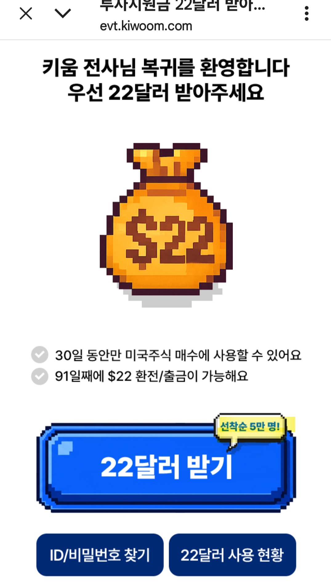 11월 22일 토스뱅크 행운퀴즈 키움증권