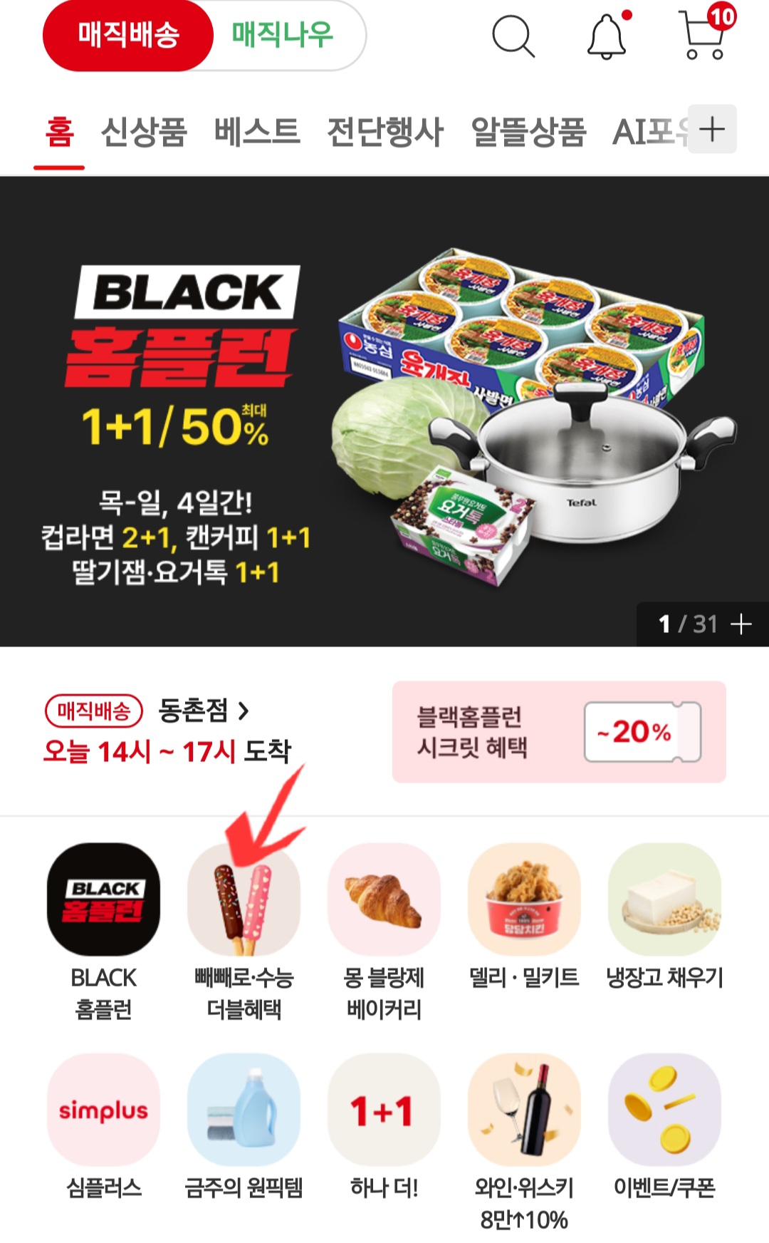 첫페이지에서 빼빼로 · 수능 더블혜택 카테고리로 입장