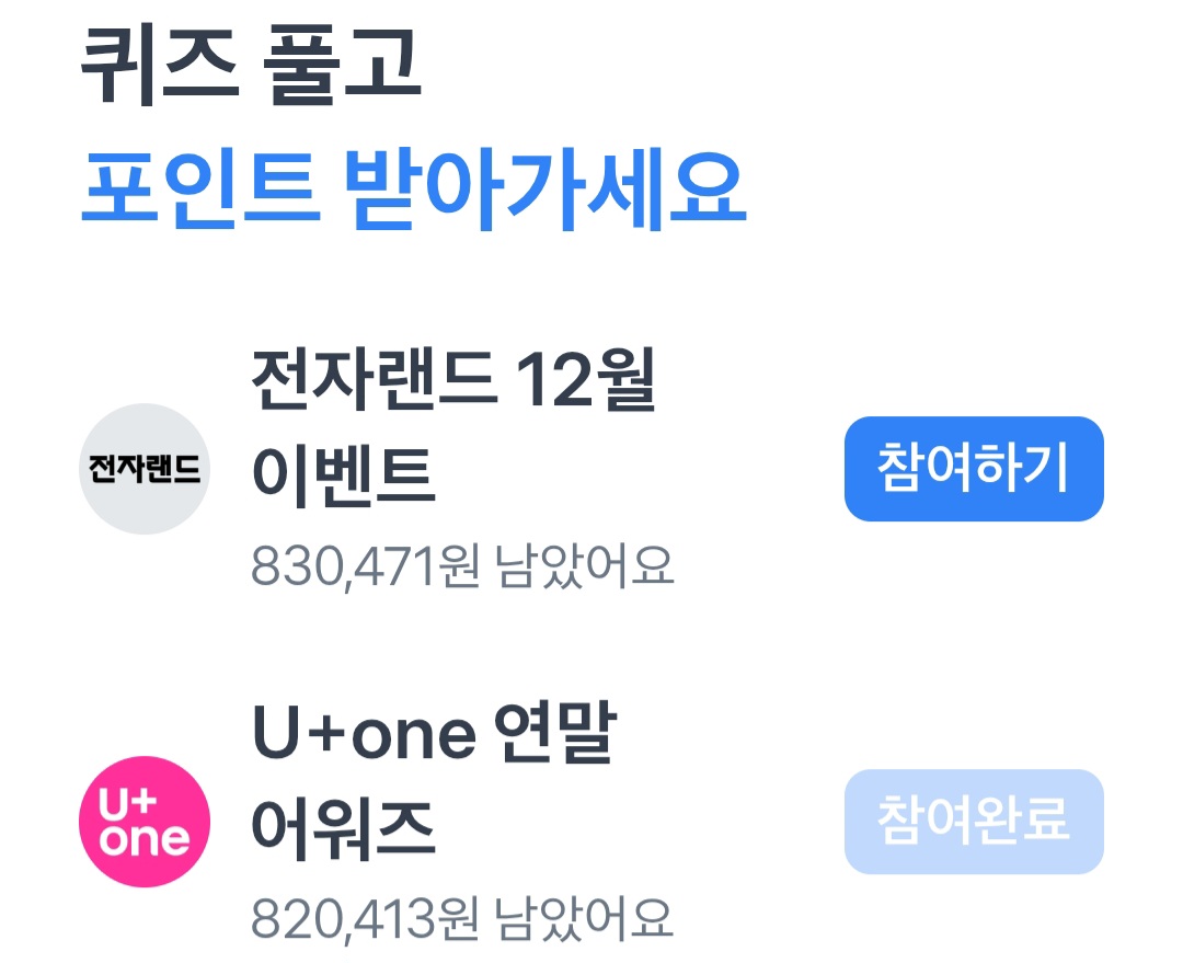 오늘도 2개의 퀴즈가 남아있지만 어제 오전부터 열러있던 U+one이벤트네요.
