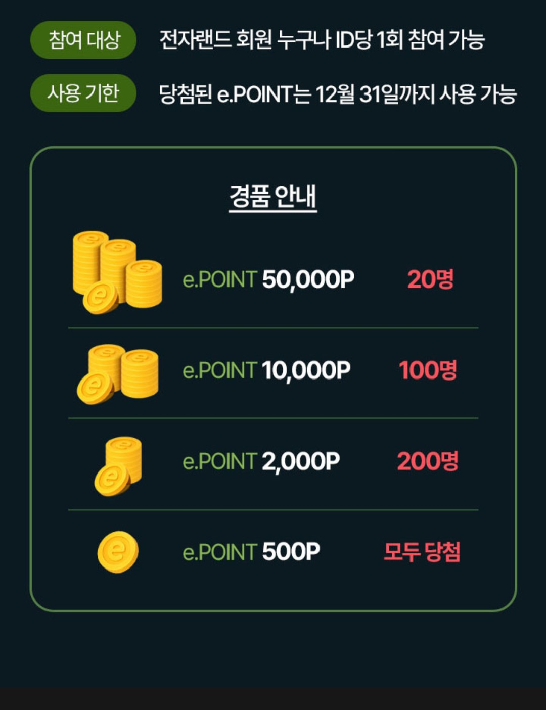 전자랜드에서 바로 사용할 수 있는 이포인트를 주고 있습니다