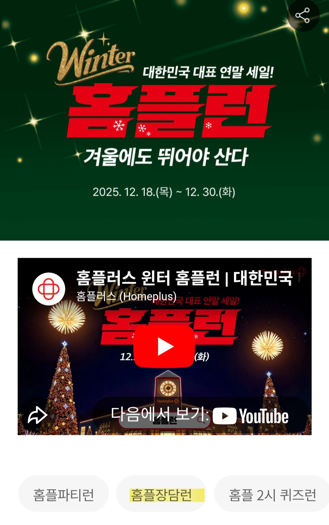 2025 대한민국 대표 연말 세일! 홈플러스 윈터 홈플런(12/18~12/30)