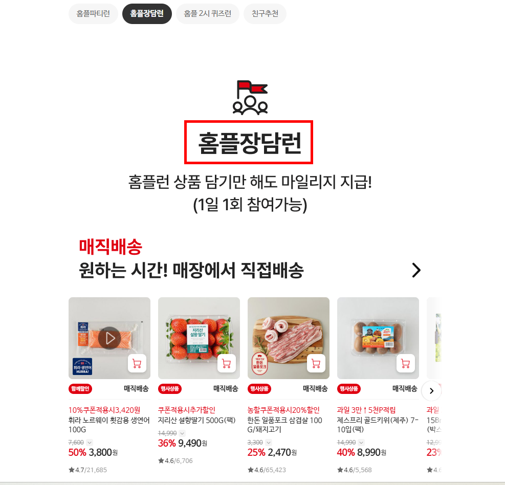 온라인 홈플러스에서 장바구니에 물건을 담아두기만 해도 마일리지를 준다네요.