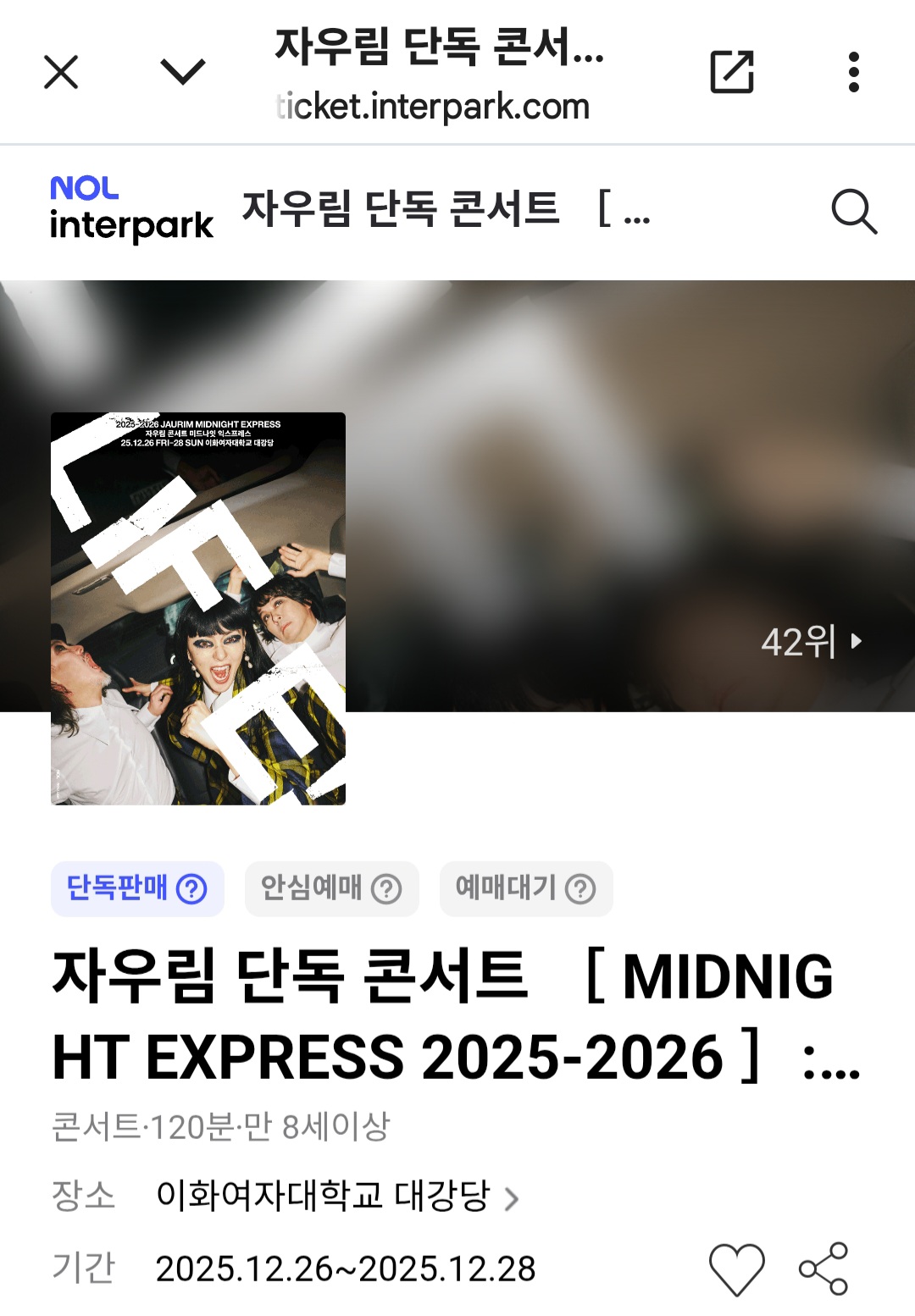 단독판매로 여기서만 예약이 가능하네요. 서울 이화여자대학교 강당에서 하는 이번 콘서트 많은 분들이 기대하고 있겠네요.
