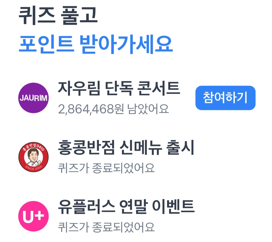 오늘 깜빡하고 못 봤더니 벌써 2개의 퀴즈는 끝이 나버렸네요. 남은 하나라도 도전!!!
