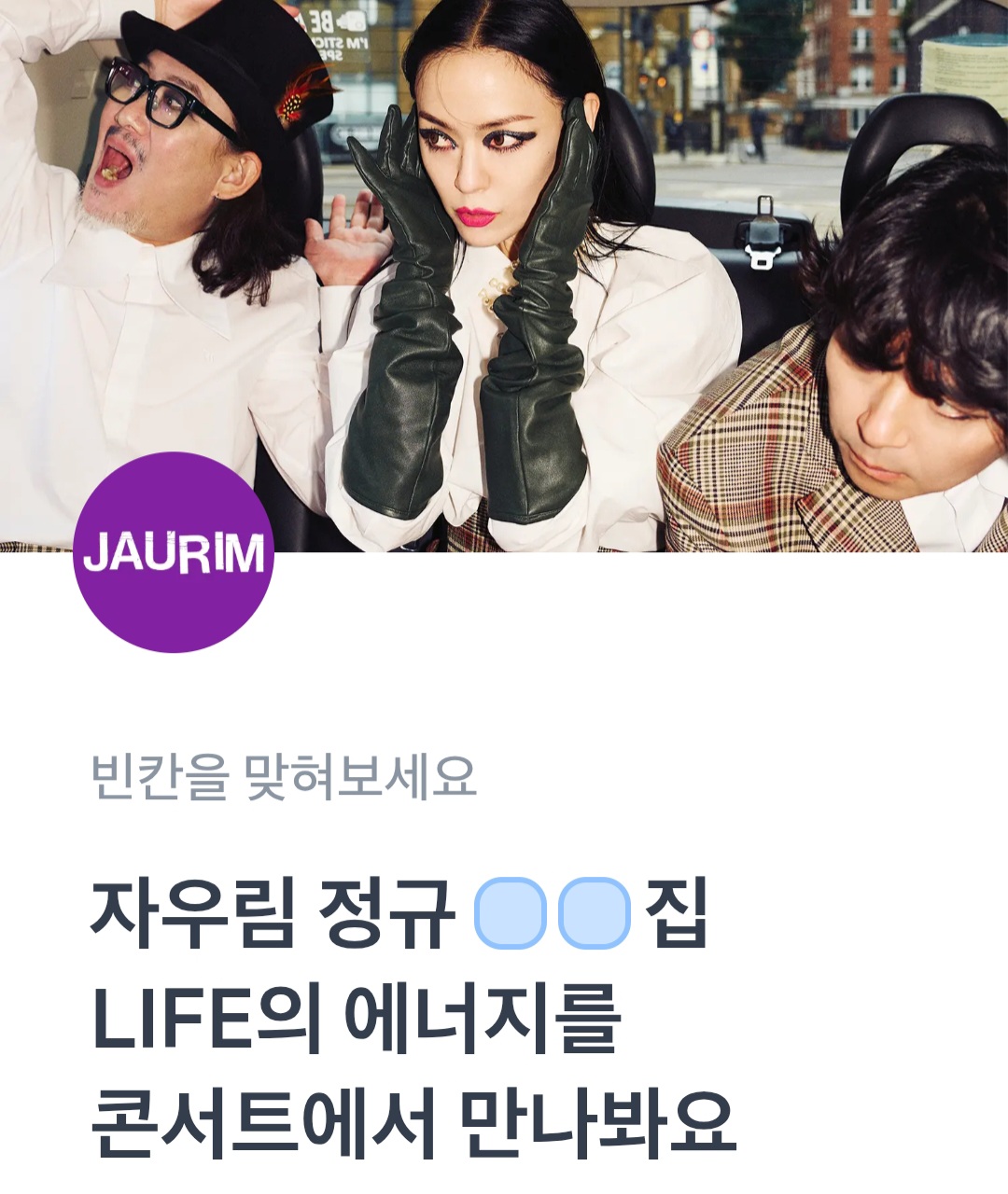 오랫만에 자우림의 정규 앨범 소식과  함께 콘서트를 한다고 합니다.