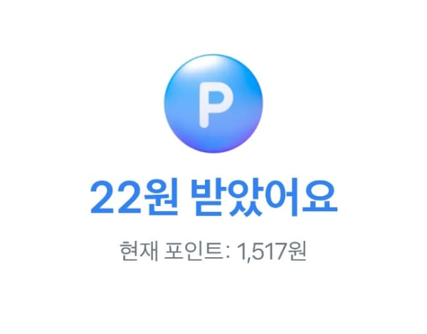 오늘 제가 받은 토스 포인트는 무려 22원이네요.