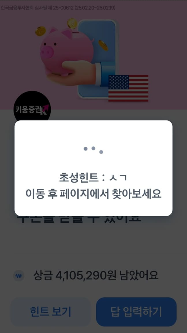 그럼 정답을 알아보기 위해서 힌트 보기를 누르면 키움증권으로 이동합니다.