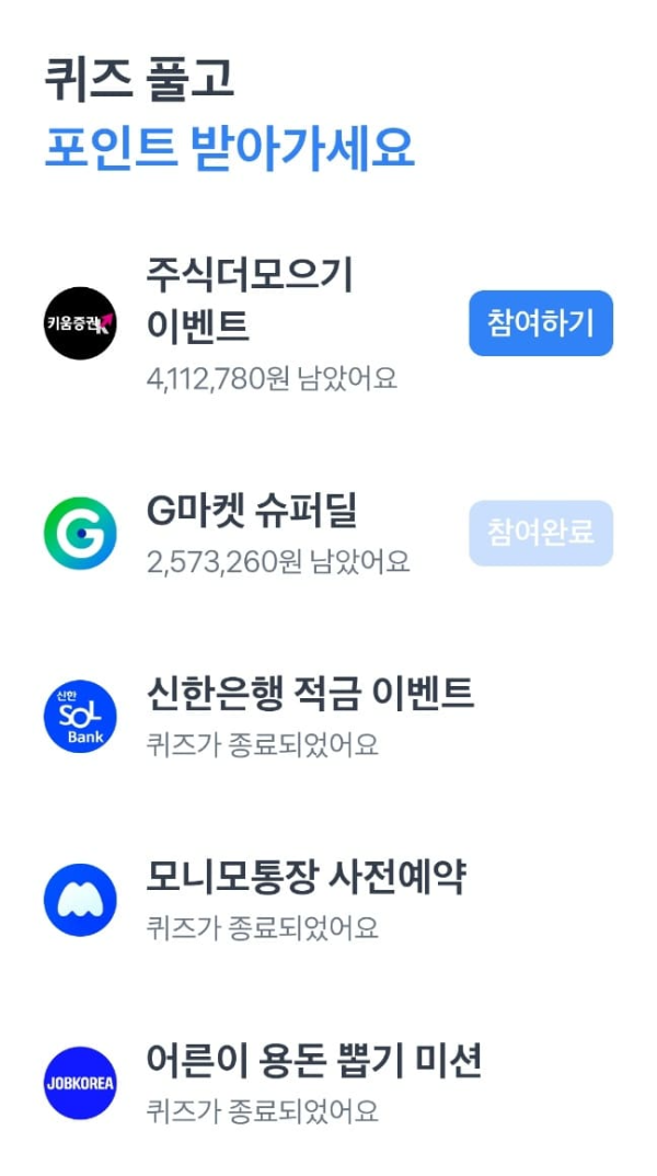토스행운퀴즈는 매일매일 진행되는 퀴즈입니다. 퀴즈를 풀 때마다 랜덤으로 토스 포인트를 받을 수 있죠.