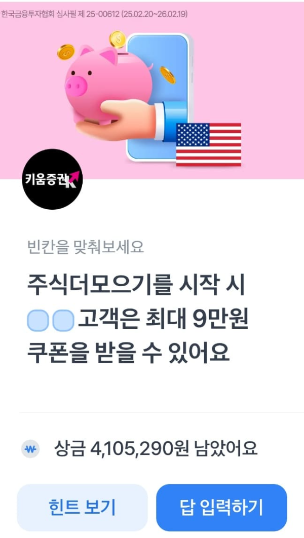오늘은 키움증권 관련 행운퀴즈가 열렸습니다.