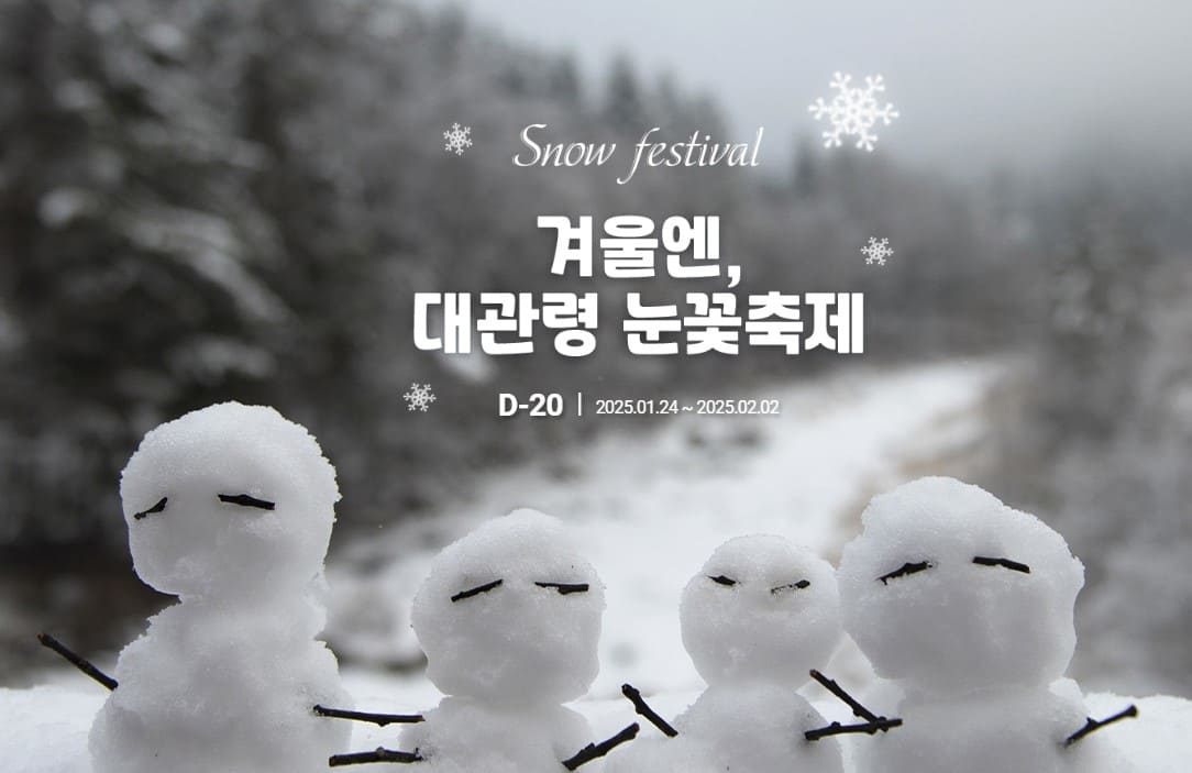 2025년 강원도 평창에서 개최되는 제31회 대관령 눈꽃축제는 '눈동이와 함께 떠나는 눈꽃여행'을 주제로 펼쳐집니다. 올해는 평창군의 마스코드인 '눈동이'와 함께 평창군의 겨울을 즐기는 테마로 구성되고 아이들이 즐기기 좋은 다양한 체험행사를 대폭 늘여 가족관광객들의 관심을 모으고자 합니다.
