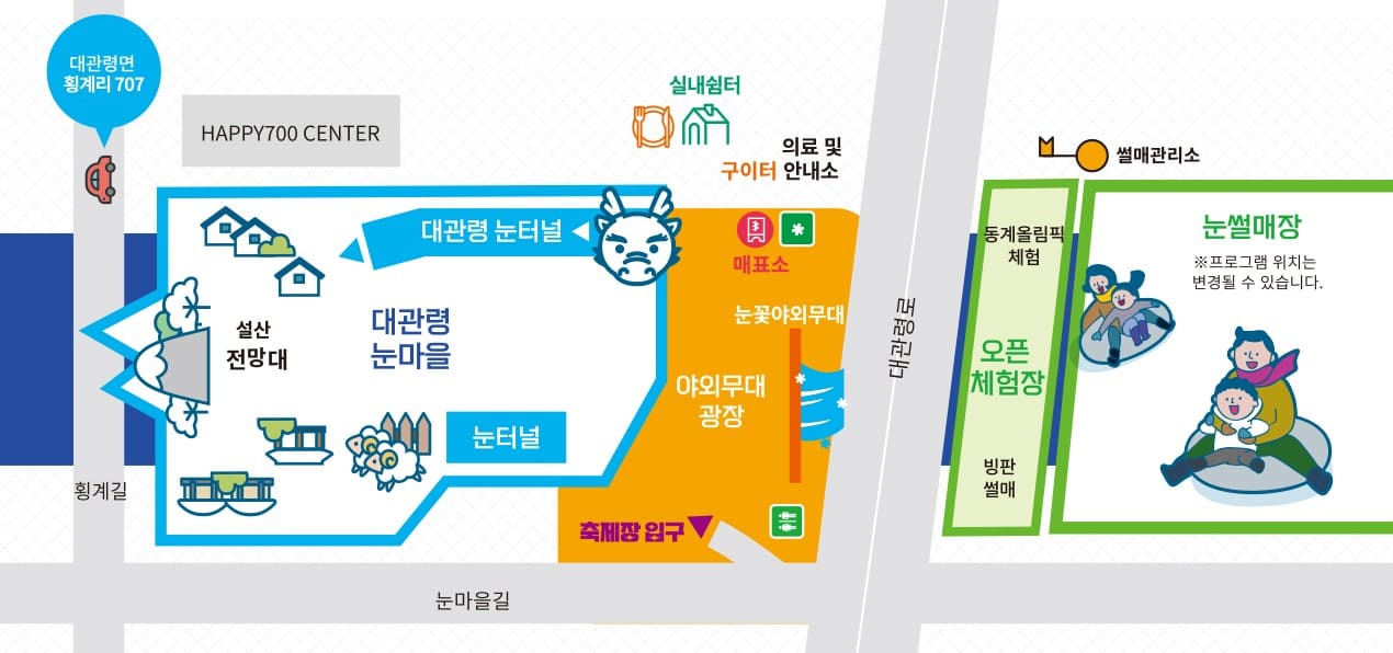 | 버스 이용시 | 횡계시외버스터미널 → 도보10분 → 행사장 |