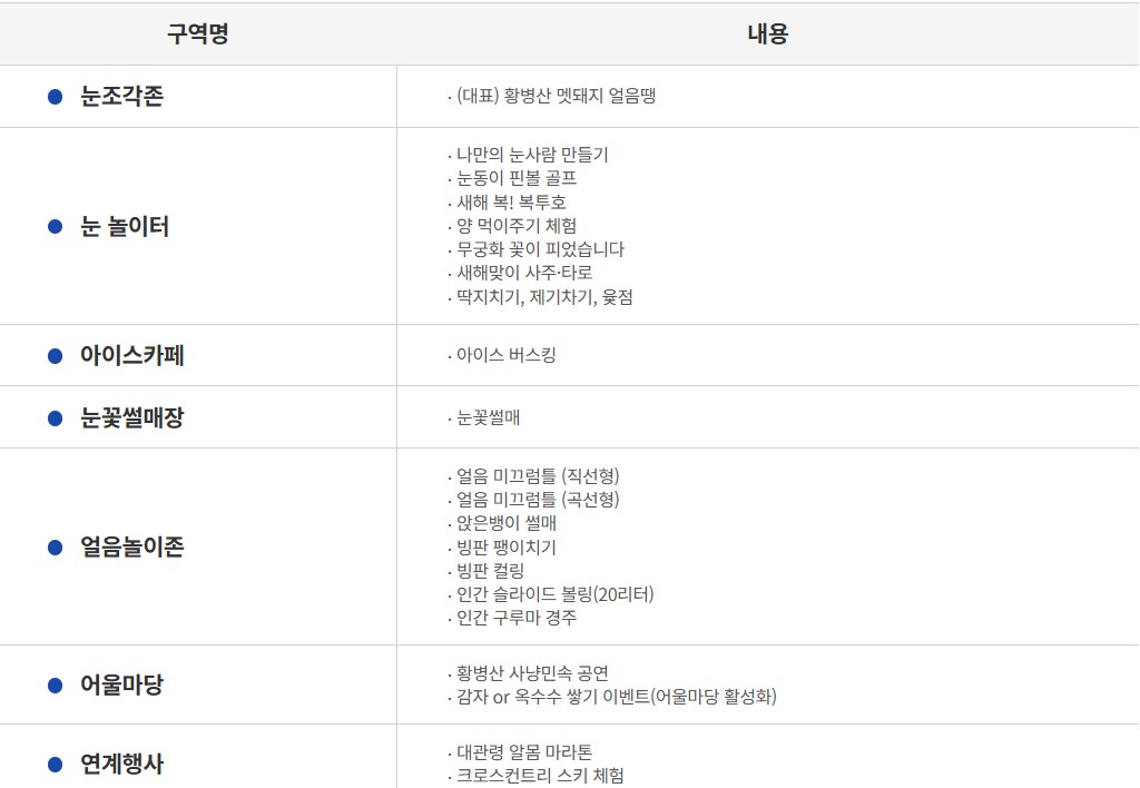 2025년 강원도 평창 대관령 눈꽃축제 기간, 프로그램