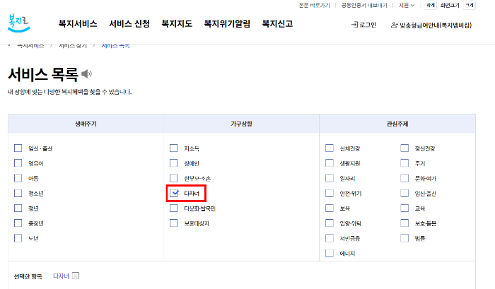 양육수당, 아이 돌봄 서비스, 문화시설 할인, 주거우선공급 등은 복지로 포털 또는 정부 24에서 진행할 수 있습니다. 계정으로 로그인 후, 다자녀 가구 지원 항목을 선택하면 필요한 항목별 신청 가능합니다.