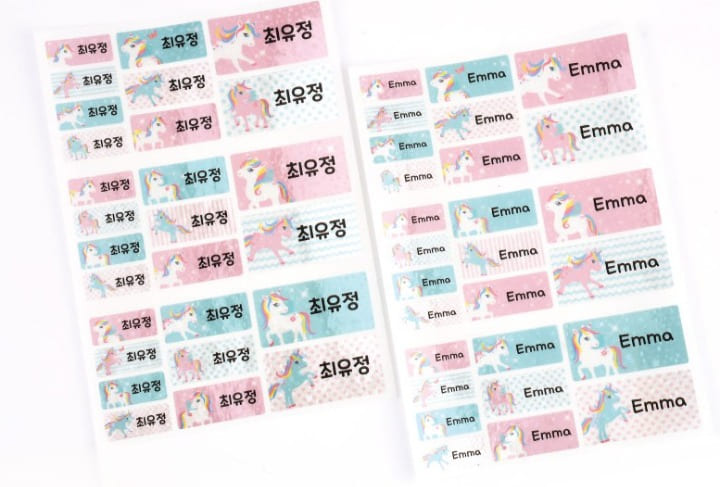 - 네임스티커 (모든 물건에 이름 적어두기!) : 네임스티커는 초등학교 기간 내내 사용해야 하니 인터넷으로 넉넉하게 구매해 두시는 게 좋아요. 그리고 다양한 사이즈로 준비해 주시면 좋아