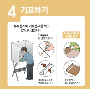- 기표한 투표용지를 접어 투표함에 넣습니다.