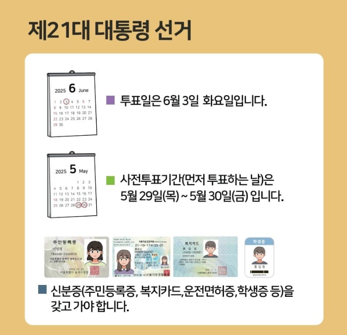 - 사전투표일 : 2025년 5월 29일(목) ~ 5월 30일(금)