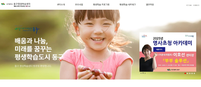 대구 동구 평생학습센터 → 회원가입 및 로그인 → 핍업창(명사초청아카데미) → 바로가기 → 신청하기