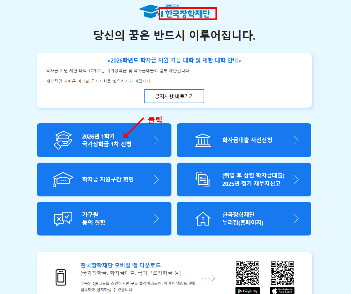 🗓 2026학년도 1학기 국가장학금 신청 기간