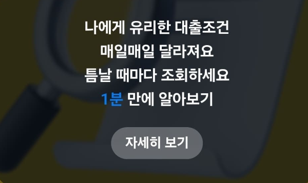 문제 : 나에게 유리한 대출조건 매일매일 달라져요 틈날 때마다 조회하세요 ㅁㅁ만에 알아보기