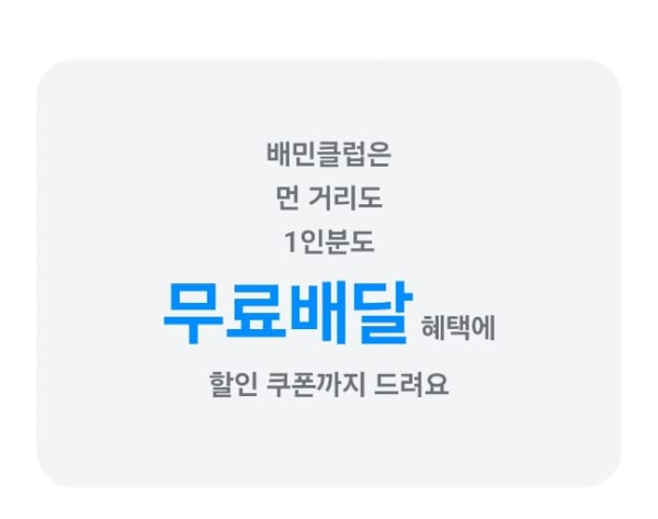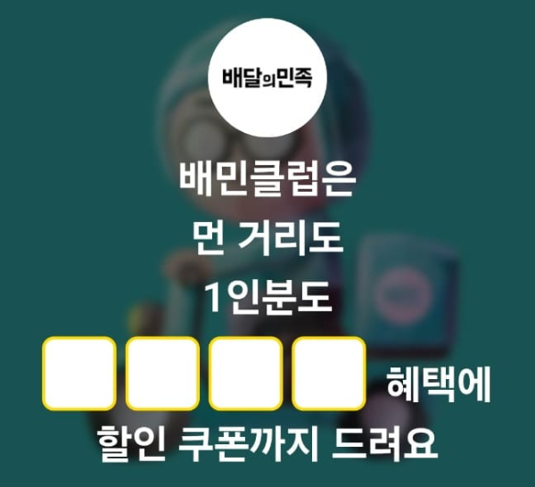 문제 : 배민클럽은 먼 거리도 1 인분도 ㅁㅁㅁㅁ혜택에 할인 쿠폰까지 드려요