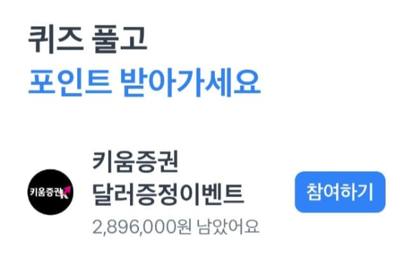 지금 열린 행운퀴즈는 키움증권 이벤트네요.